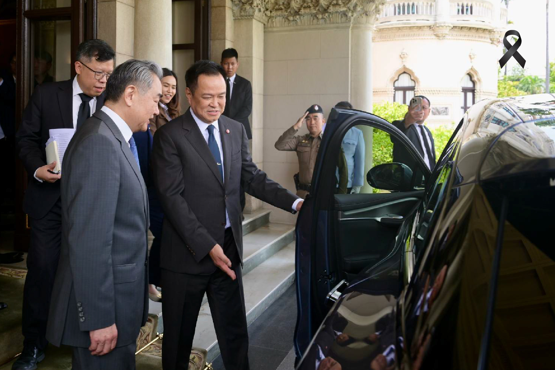 นายอนุทิน ชาญวีรกูล นายกรัฐมนตรี เปิดทำเนียบรัฐบาลต้อนรับนายหวัง อี้ สมาชิกกรมการเมือง ผู้อำนวยการสำนักงานคณะกรรมการกลางด้านกิจการต่างประเทศของพรรคคอมมิวนิสต์จีน และรัฐมนตรีว่าการกระทรวงการต่างประเทศสาธารณรัฐประชาชนจีน ในโอกาสเดินทางเยือนประเทศไทยอย่างเป็นทางการ โดยมีนายสีหศักดิ์ พวงเกตุแก้ว รองนายกรัฐมนตรีและรัฐมนตรีว่าการกระทรวงการต่างประเทศ ร่วมให้การต้อนรับ