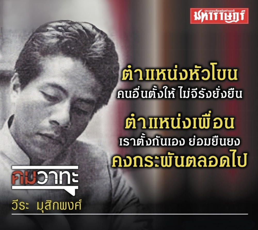 ตำแหน่งหัวโขนคนตั้งให้ ไม่จีรังยั่งยืน ตำแหน่งเพื่อน เราตั้งกันเอง ย่อมยืนยง คงกระพันตลอดไป
