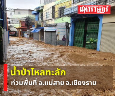 น้ำป่าไหลหลากเข้าท่วมหลายหมู่บ้าน ต.แม่สายมิตรภาพ อ.แม่สาย จ.เชียงราย
