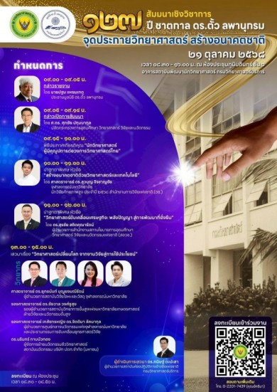 กรมวิทย์ฯ เชิญร่วมสัมมนาเชิงวิชาการ “127 ปี ชาตกาล ดร.ตั้ว ลพานุกรม” ย้อนรำลึกผู้บุกเบิกงานวิทยาศาสตร์ไทย “จุดประกายวิทยาศาสตร์ สร้างอนาคตชาติ”