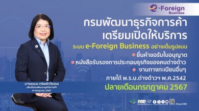 กรมพัฒนาธุรกิจการค้า เตรียมเปิดให้บริการระบบ e-Foreign Business สำหรับนักลงทุนต่างชาติ ปลายเดือนกรกฎาคม 2567