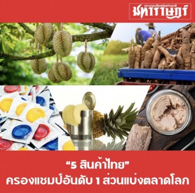 5 สินค้าไทยครองแชมป์อันดับ 1 ส่วนแบ่งตลาดโลก