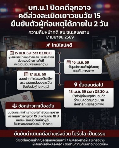 บก.น.1 ปิดคดีอุกอาจ ล่วงละเมิดเยาวชนวัย 15 ปี ย่านข้าวสาร ยืนยันตัวผู้ก่อเหตุได้ภายใน 2 วัน