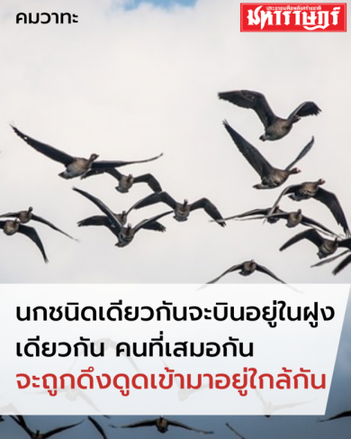 นกชนิดเดียวกันจะบินอยู่ในฝูงเดียวกัน คนที่เสมอกัน จะถูกดึงดูดเข้ามาอยู่ใกล้กัน