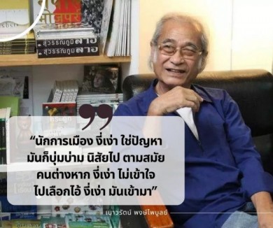 “นักการเมือง งี่เง่า ใช่ปัญหา มันก็บุ่มบ่าม นิสัยไป ตามสมัย คนต่างหาก งี่เง่า ไม่เข้าใจ ไปเลือกไอ้งี่เง่า มันเข้ามา”