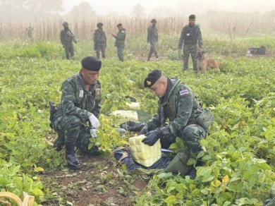 กกล.ผาเมือง โดย ฉก.ไชยานุภาพ ปฏิบัติการตรวจยึดยาเสพติดให้โทษประเภท 1 (ยาบ้า) จำนวน 18 เป้