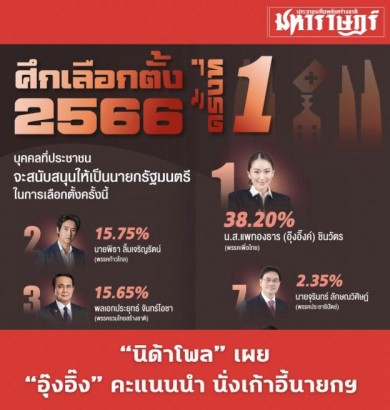 เลือกตั้ง 2566 “นิด้าโพล” เผยยกแรก “อุ๊งอิ๊ง” คะแนนนำห่างคู่แข่ง นั่งเก้าอี้นายกฯ