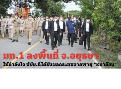 “มท.1” ลงพื้นที่ให้กำลังใจ ปชช. ชาวอยุธยาที่ประสบภัยน้ำท่วมจากพายุ “หมาอ๊อน”