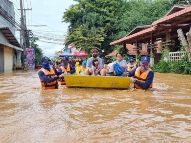 น้ำป่าไหลหลากเข้าท่วมหลายหมู่บ้าน ต.แม่สายมิตรภาพ อ.แม่สาย จ.เชียงราย
