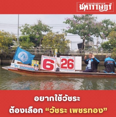ชาว 2 ฝั่งคลองบางแคโบกมือต้อนรับ “เดอะแจ็ค” วัชระ เพชรทอง อย่างคึกคัก ขณะลงเรือหาเสียง