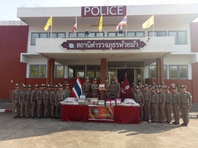 ตำรวจภูธรภาค 1 แถลงข่าวการจับกุมยาคีตามีนน้ำหนัก 300 กิโลกรัม และปฏิบัติการล้มคอกม้ายึดเงินสดได้คามือ 846,800 บาท