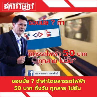 ชอบมั้ย ? ถ้า “ค่าโดยสารรถไฟฟ้า 50 บาท ทั้งวัน ทุกสาย ไม่อั้น”