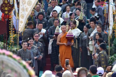 80 ปี ประชาธิปัตย์คึกคัก! ‘อภิสิทธิ์ – ชวน’ นำทำบุญ 3 ศาสนา บวงสรวงพระแม่ธรณีฯ เสริมสิริมงคลสู้ศึกการเมือง