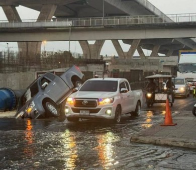 ถนนพระราม 2 ทรุดตัวจากท่อส่งน้ำแตก แนะประชาชนระมัดระวังในการสัญจร